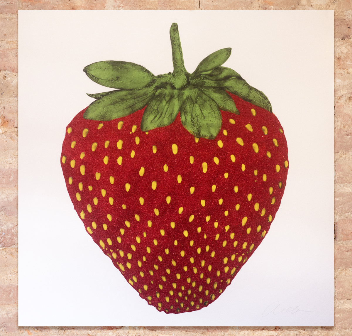 Une Fraise is a sparkly serigraph edition, and is part of the large ‘fruity’ series of works that